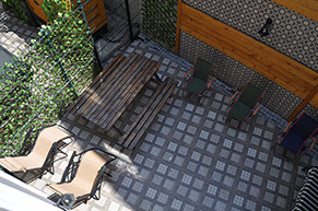 Double Room Enjoy your stay in our 22m2 Double room. This rooms offers side views of the street and patio. The bathroom offers a walk-in glass shower with top of the line bath amenities.