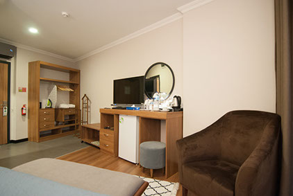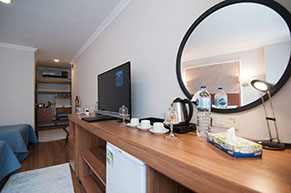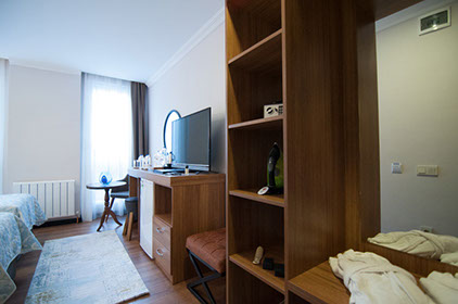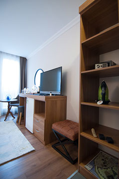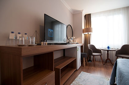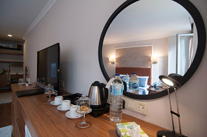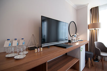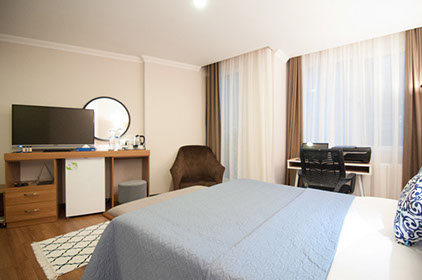 Working desk and printer with WiFi are featured. Room rate includes; - Private check-in and check-out - Free welcome drinks, Turkish delights and desserts - Open-buffet hot and cold breakfast from 08:00 am until 10:00 am - Complimentary patisseries time, coffee, tea and soft drinks from - 24 Hours non-limited hot drinks